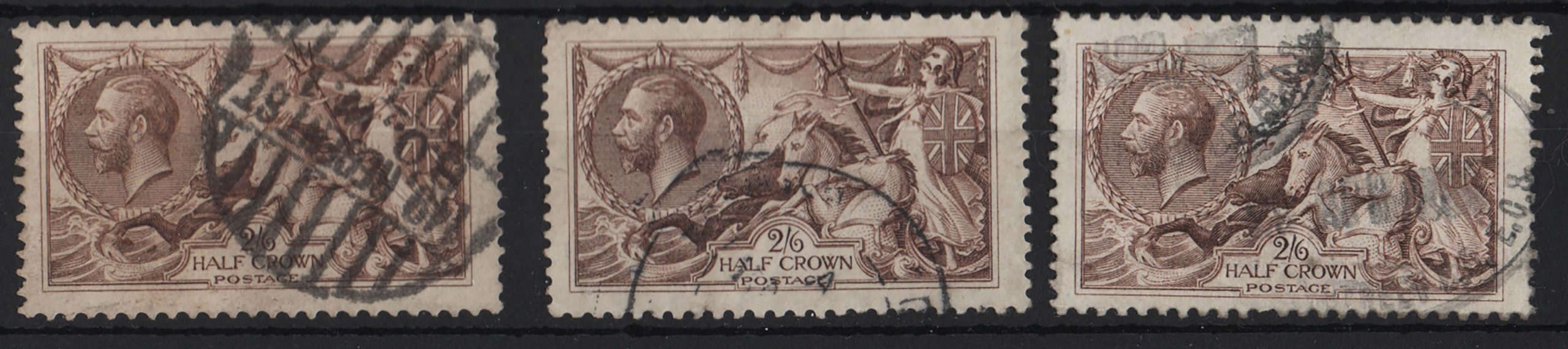 GB 1918 Bradbury 2/6d 3 different shades gu – fu sg413a, etc