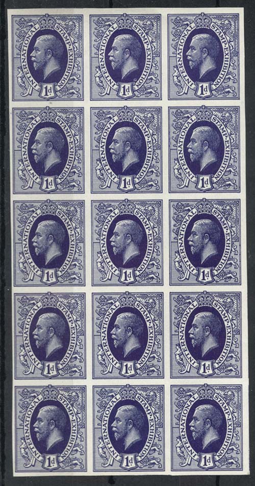 GB 1929 Ideal Stamp 1d violet imperf blk of 15 um