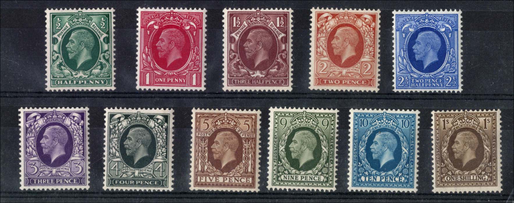 GB 1934 ½d – 1s um set of 11 sg339-49