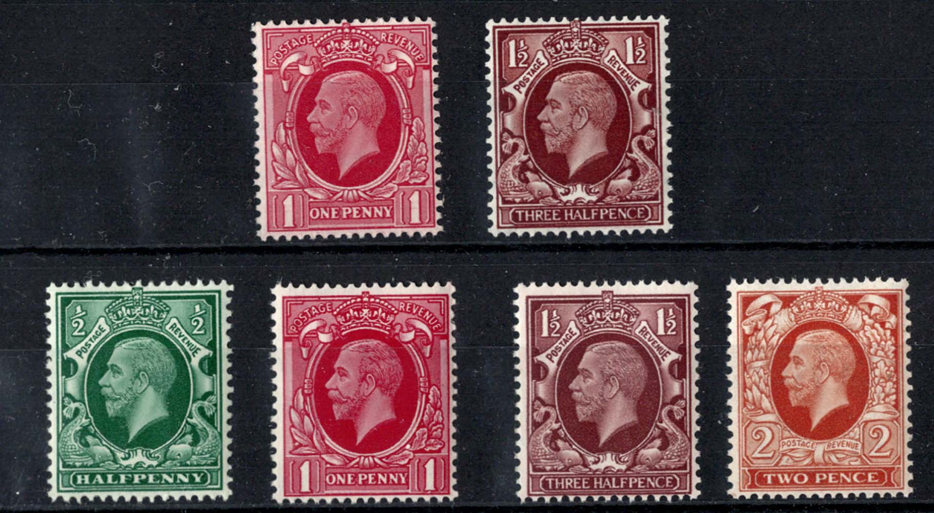 #0416 GB 1934 ½d – 2d intermediate format set of 4 um sg439var, also large format pair