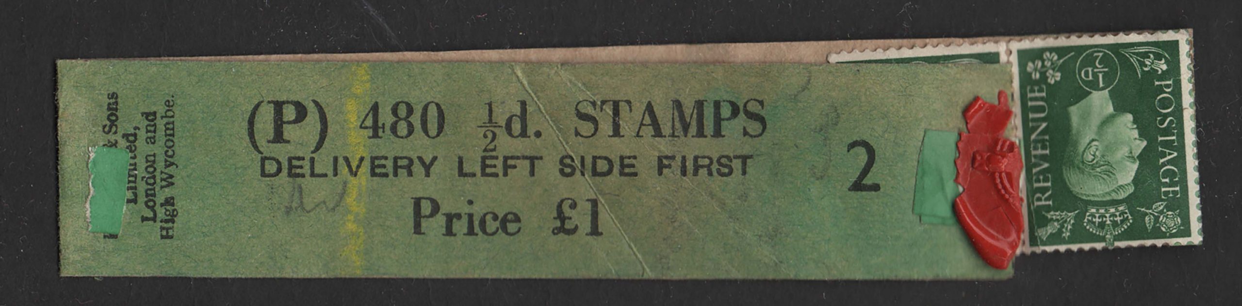 GB 1937 Dark colours ½d P480 black on dull green coil leader #2 um with 2 stamps attached [ref 287bb1105/s/9s0309]