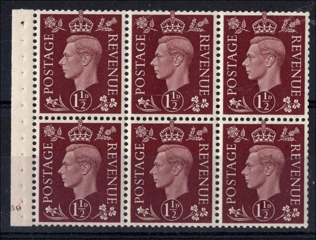 GB 1937 Dark colours 1½d cyl G69 booklet pane fine mint, quite good perfs cat £125 [ref: 292/430 sa/9i0217]