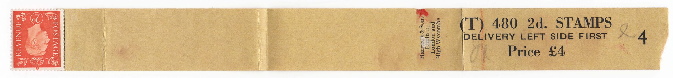 GB 1937 Dark colours 2d watermark sideways T480 coil leader in black on yellow-buff, coil #4 [ref 288/sa/ac0436] King George VI
