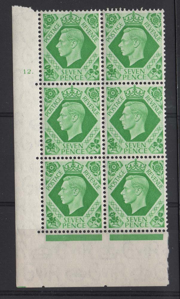 GB 1937 Dark Colours 7d cyl blk 12 dot perf EI um c£125 [ref 287bb1120/sae/9o0036]
