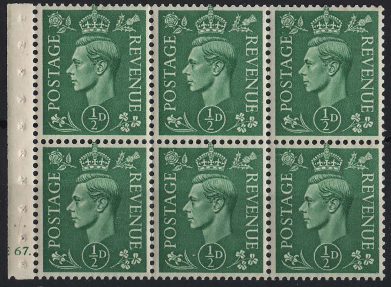 GB 1941 Light colours ½d cyl E67 dot booklet pane of 6 vf mint, good perfs c£75 [ref 287bb1142/sa/9w0236]
