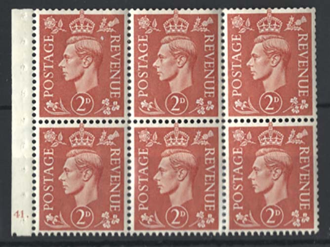 GB 1941 Light Colours 2d cyl H41 dot booklet pane of 6 unmounted mint good perfs (v slight trim at right) cat £85 [ref: 292/450 sa/8q0136]