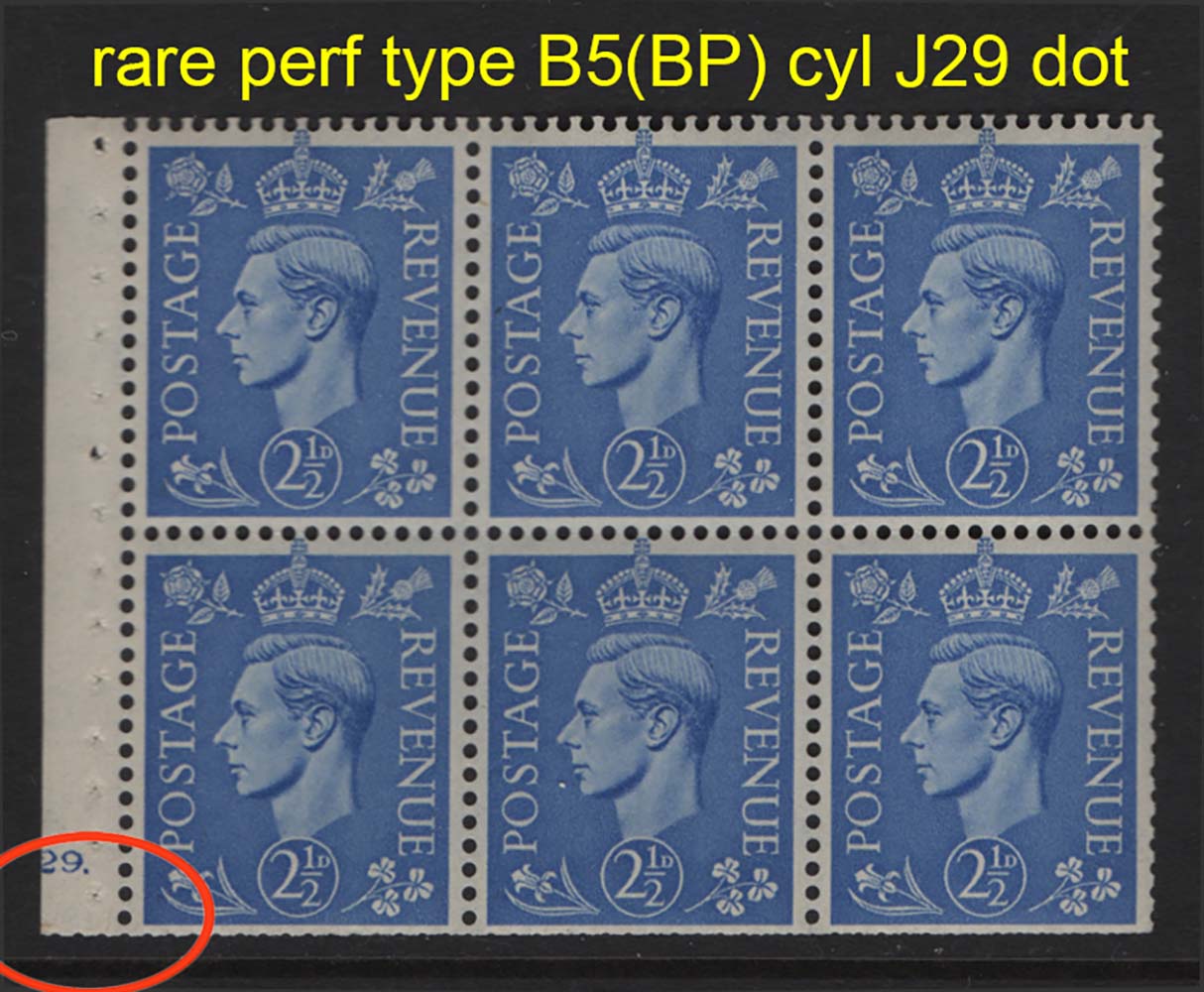 GB 1941 Pale colours 2½d cyl J29 dot booklet pane of 6 rare perf type B5(BP) unmounted mint, av perfs cat £300 [ref 288/sa/ac0424] King George VI