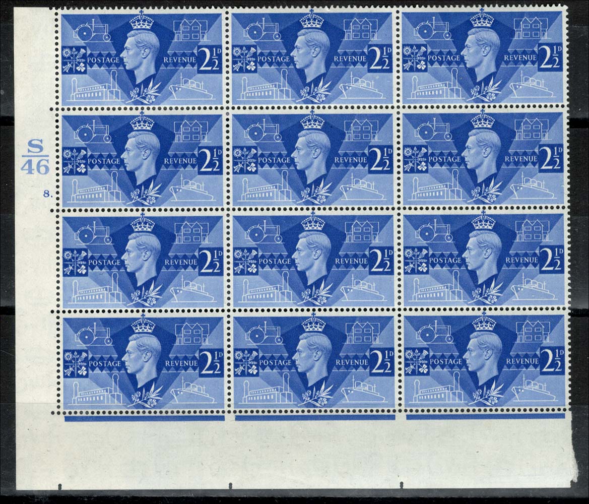 GB 1946 Victory 2½d cyl 8 dot, fine mint corner block of 12 cat £45+ [ref: 292/454 s/9i0252]
