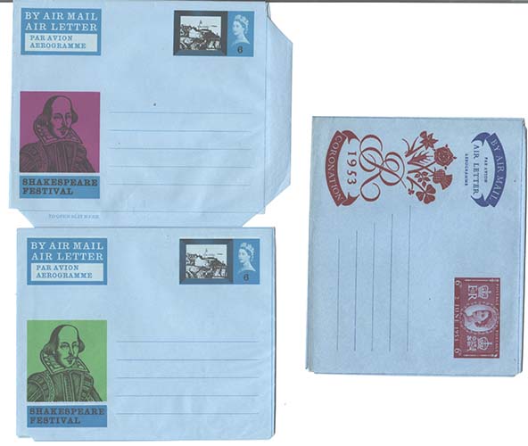 GB 1953 Coronation airletter unused, ditto both 1964 Shakespeare airletters