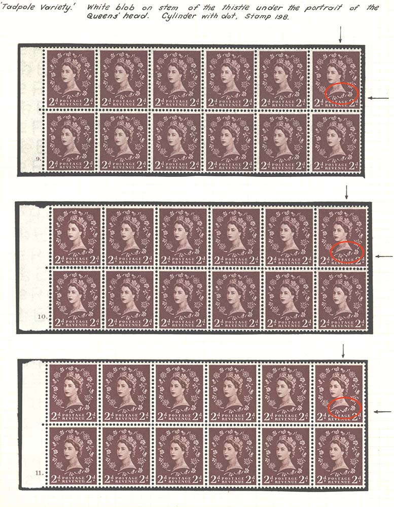 GB 1955 Edward 2d light, the Tadpole variety f mint cyl 9, 10, 11 dot positional blks of 12