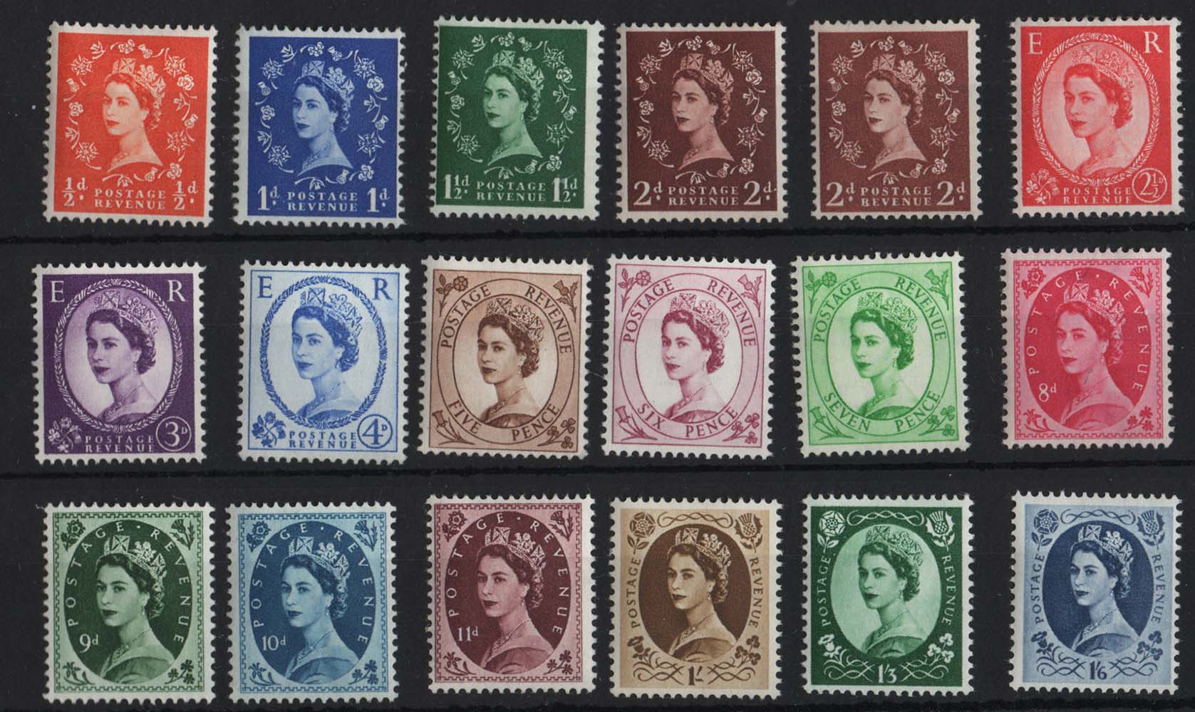 GB 1955 Edward wmk ½d – 1/6d set of 18 um [ref 287bb1216/sa/9y0365]