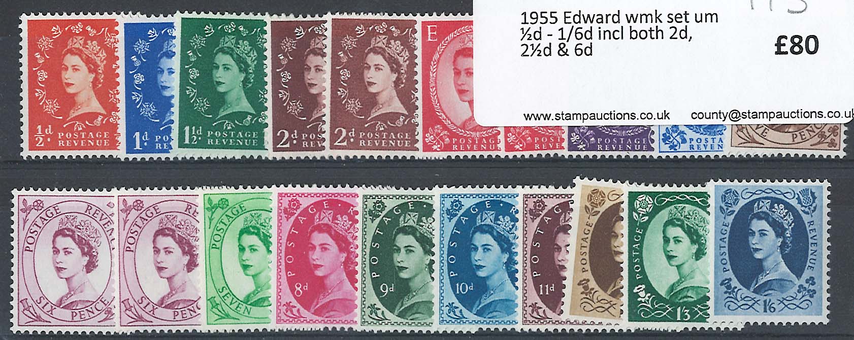 GB 1955 Edward wmk set um ½d – 1/6d incl both 2d, 2½d & 6d [ref 287bb1225/sae/4m0689]