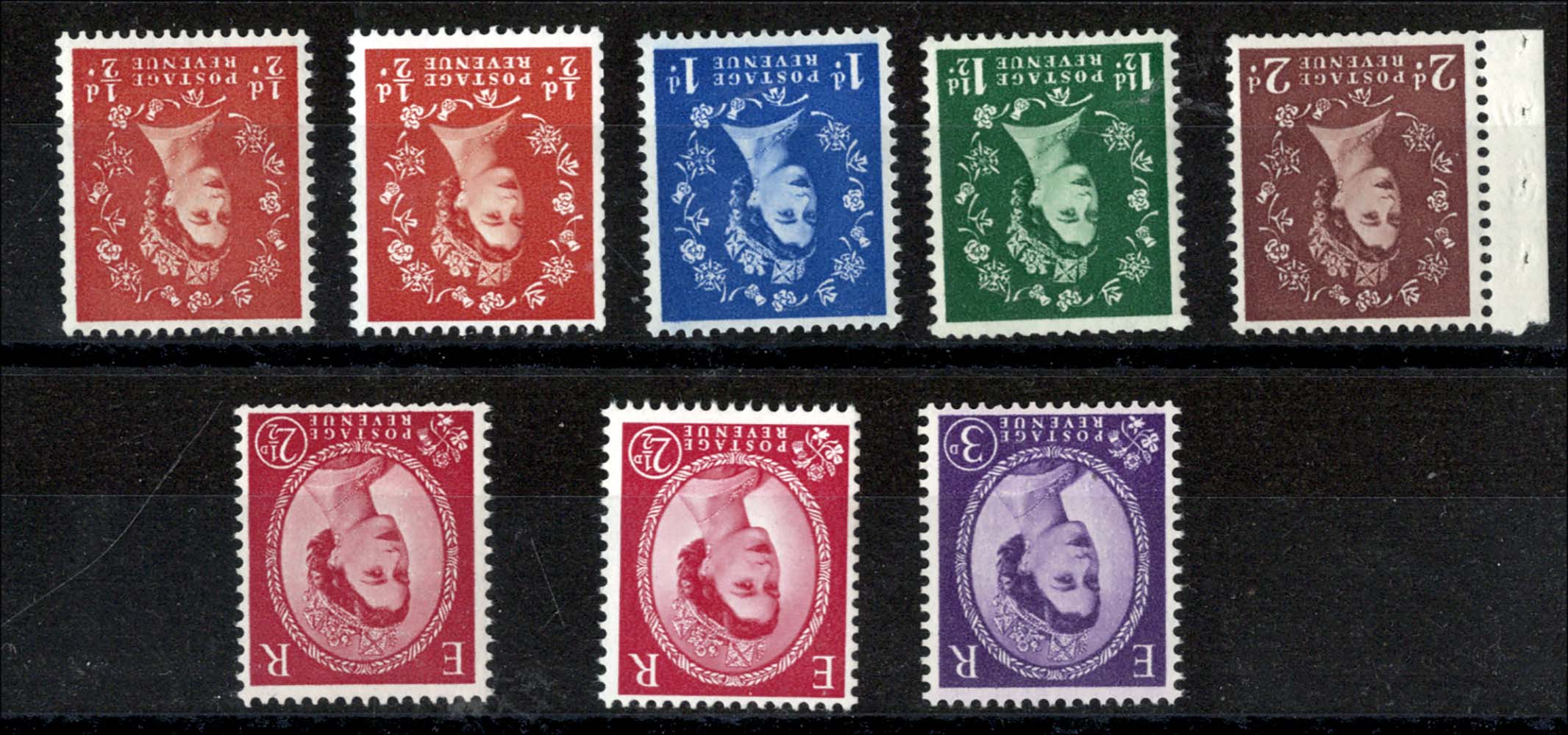 GB 1958 Crowns wmk inverted set of 9 unmounted mint perfs as scan [ref ebay/1264-a58 e4558]
