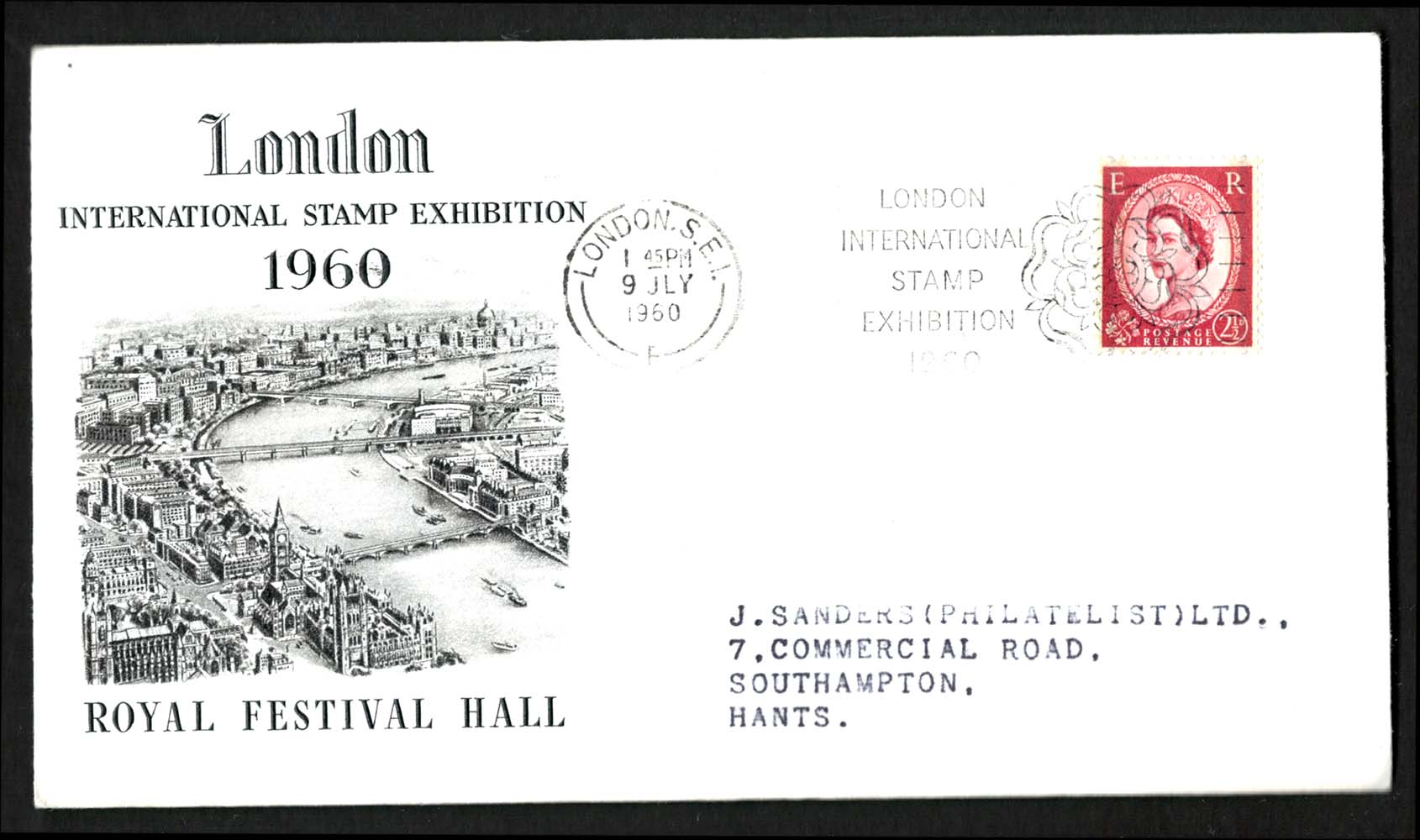 Phosphor Graphite 2½d fine used on 1960 London International Stamp Exhibition illus cover