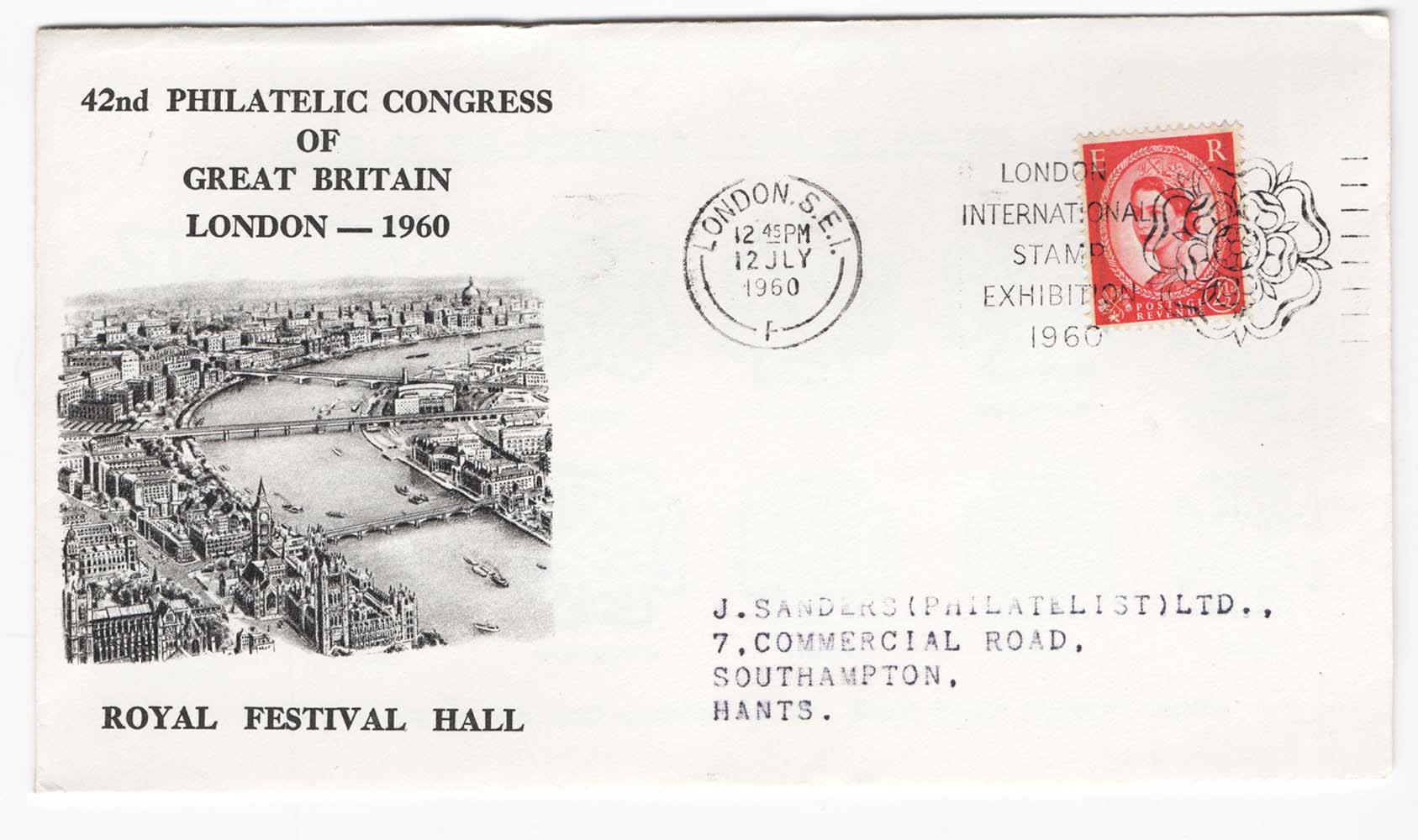 GB 1959 Phosphor Graphite 2½d fu on 1960 London International Stamp Exhibition illus cover dated 12JY60 [ref 287bb1259/s/9q0679]