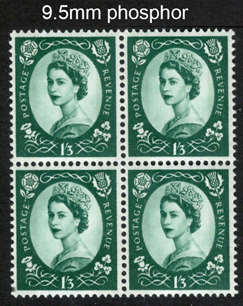 1/3d phosphor 9.5mm bands unmounted mint block of 4