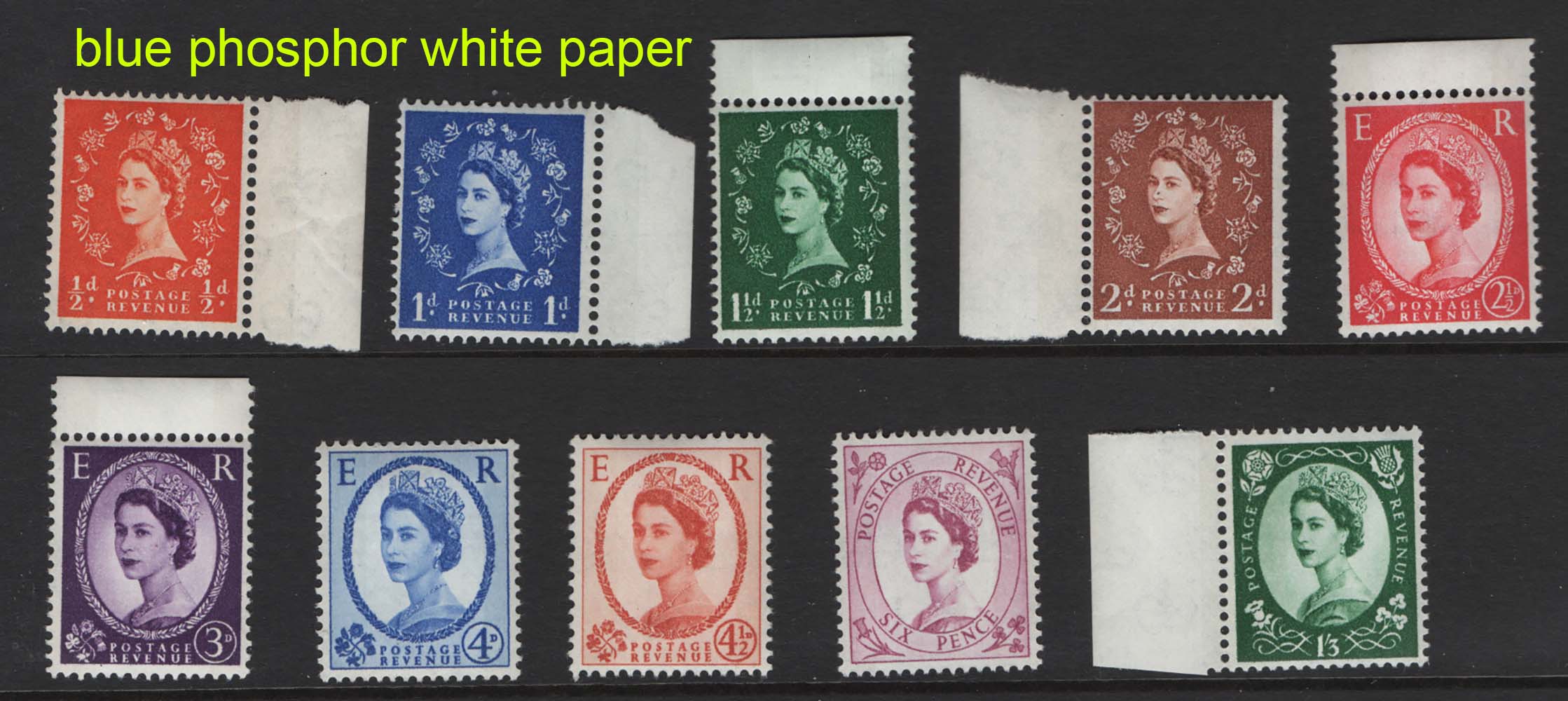 GB 1960 Blue phosphor white paper um set of 10 um ½d- 1/3d