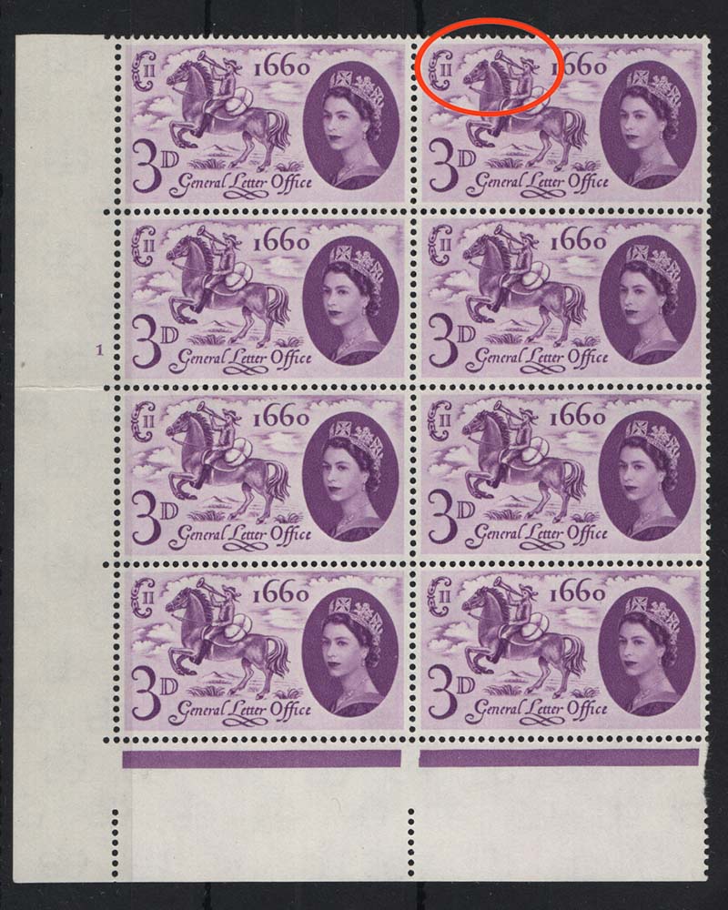 GB 1960 GLO 3d r17/2 the broken mane variety um cyl blk of 8 c£70