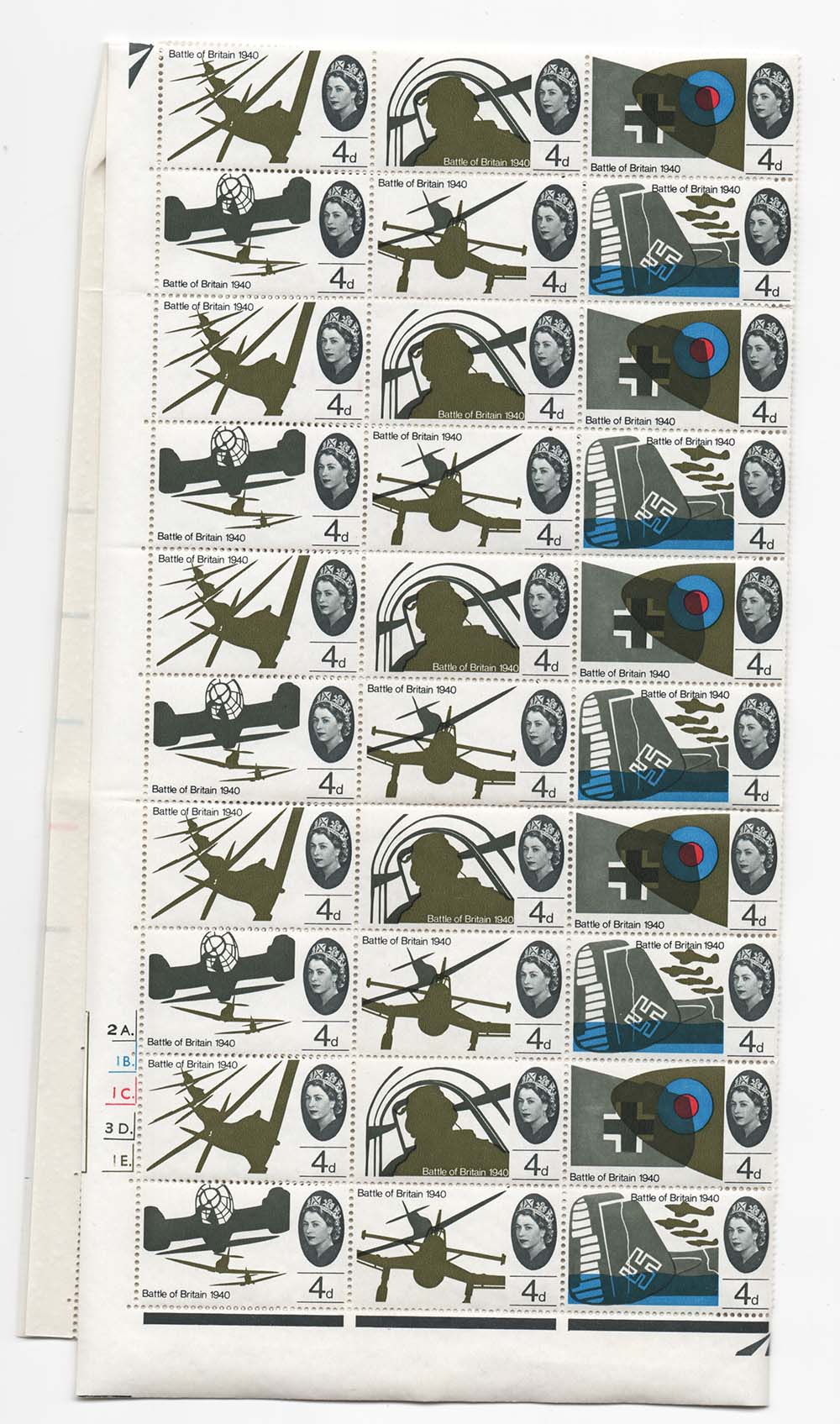 GB 1965 Battle of Britain 4d ord complete um dot sheet of 120, minor separation