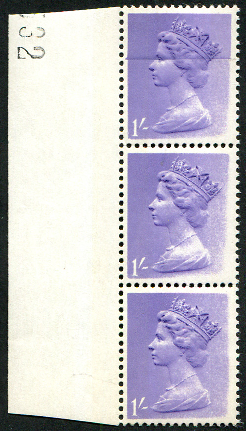 GB 1967 Machin 1s PVA dramatic dry print inking flaw on vertical strip of three um [ref 287bb1365/sae/8j154]
