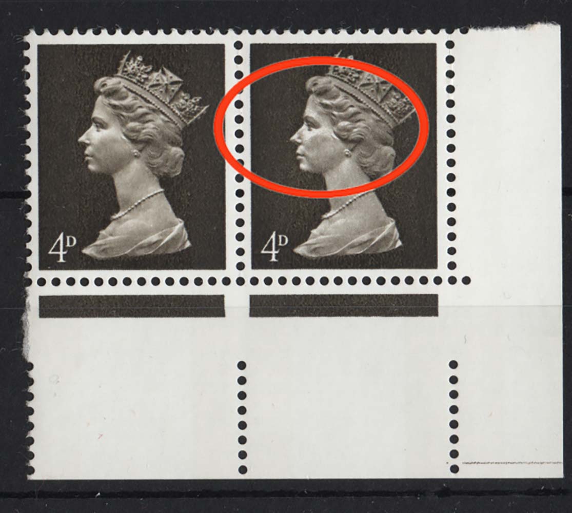 GB 1968 Machin 4d 2B PVA r20/12 white patch over eye variety Spec U12c um corner pair c£20 [ref 287bb1379/sa/9q0746]