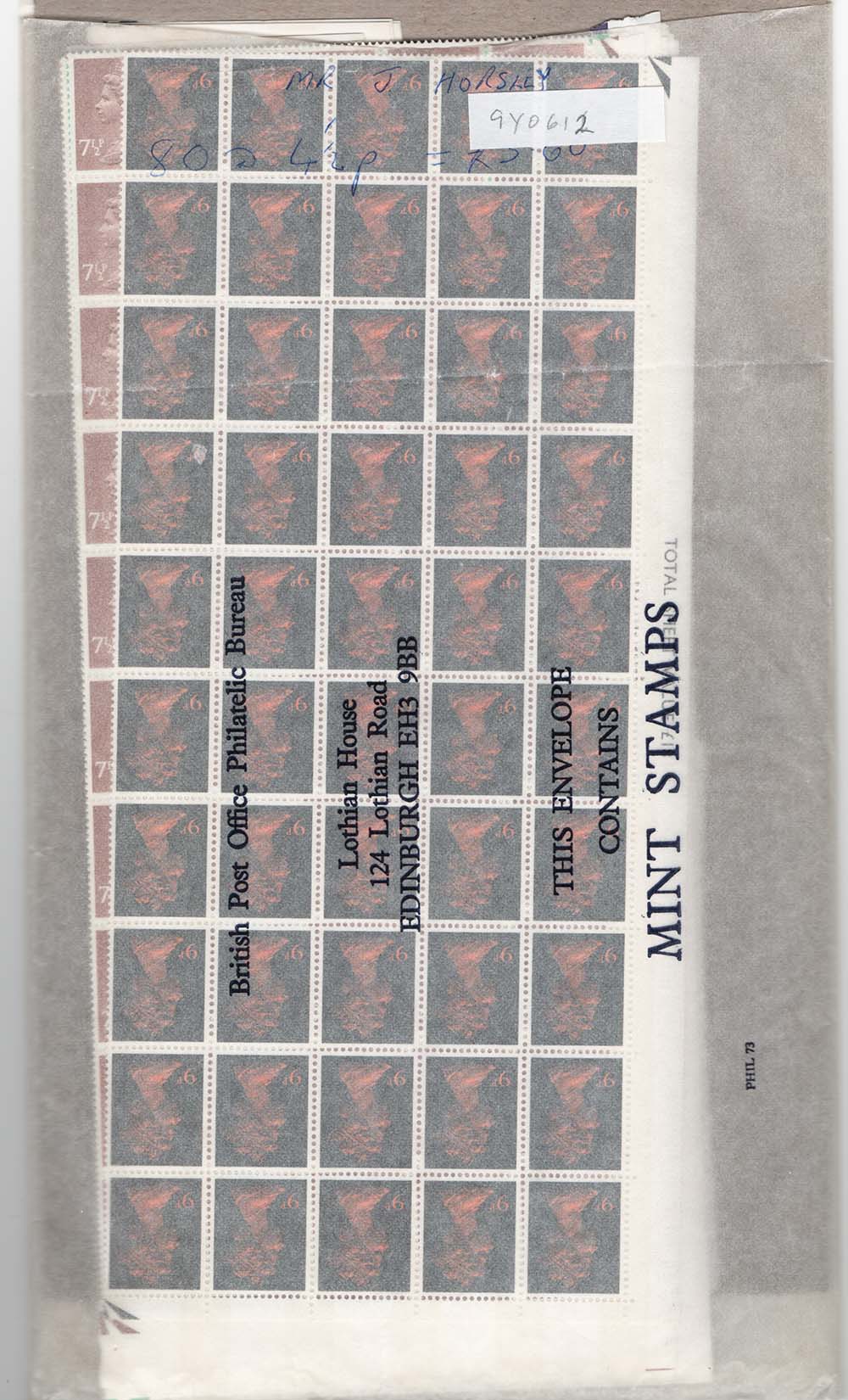 GB 1971 Machin OCP/PVA 100 sets of12 ½p – 9p in large block um many as ¼-sheets of 50 study chance [ref 287bb1432/l/9y0612]