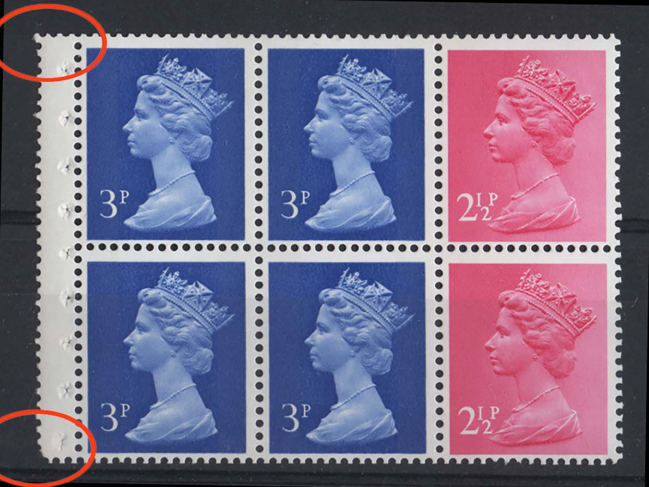 GB 1971 Machin stitched pane 3p/2½p se-tenant perf type PAP1, good perfs um MCC£30