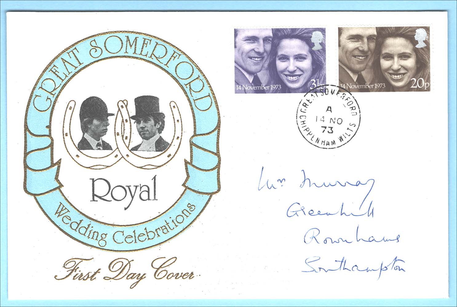 GB 1973 Royal Wedding FDC, Great Somerford cds, neat hand address cat £30 [ref ebay/1237-a52 e4420] 291/#702