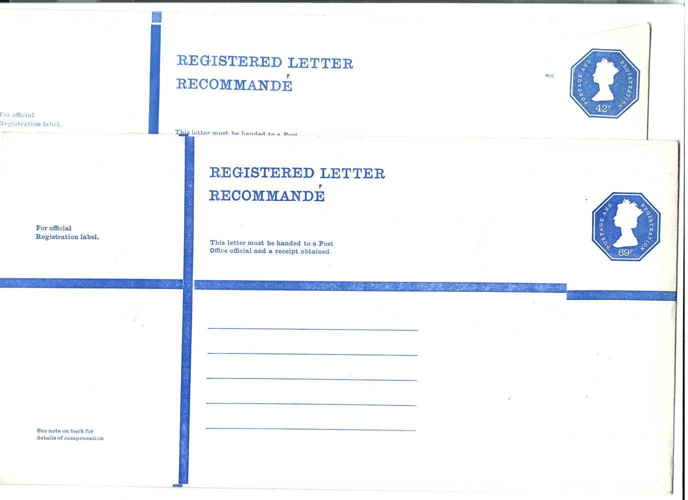 GB 1975 42p K-size reg envelope fine unused, ditto 69p