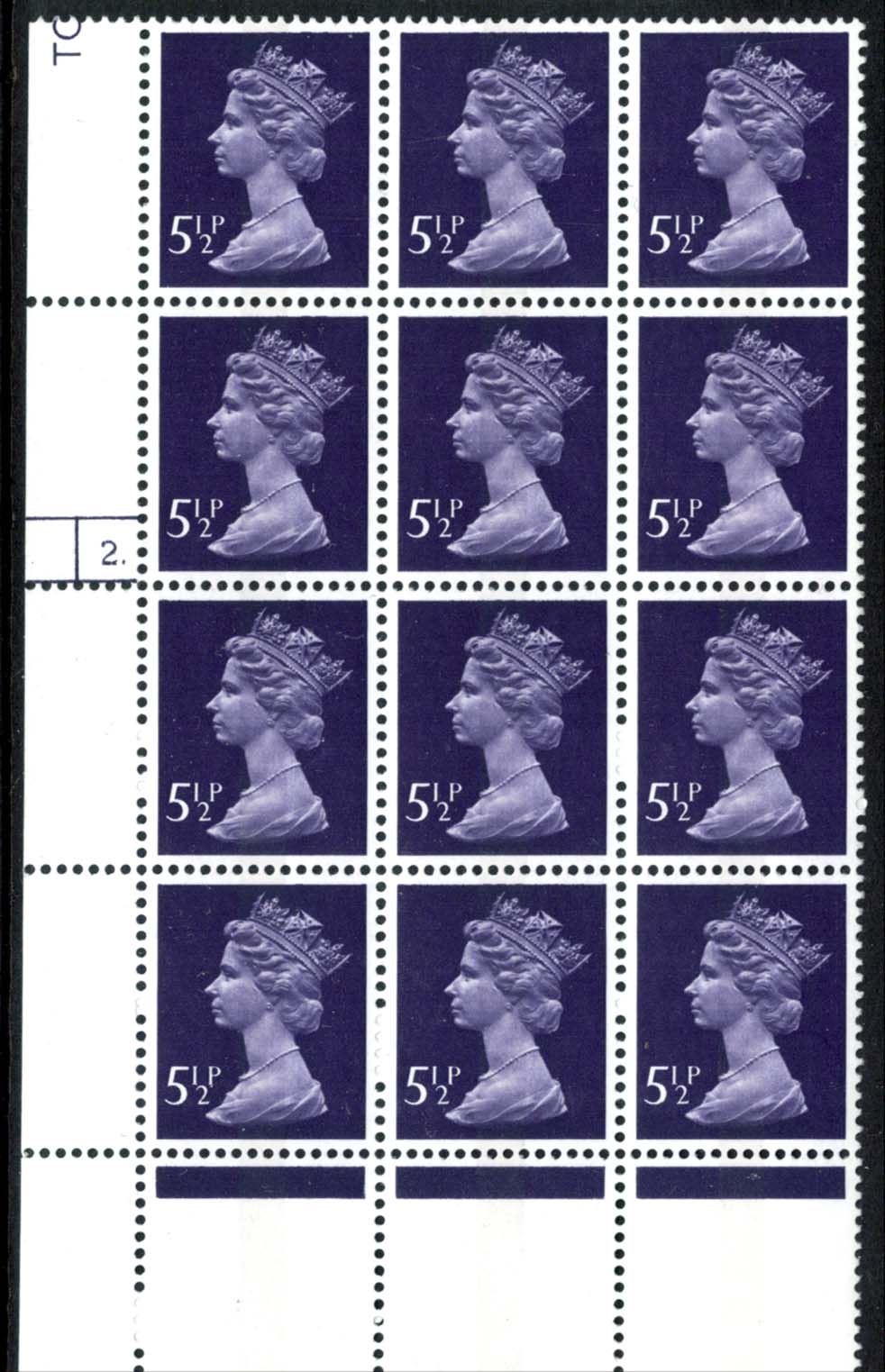 Machin 5½p CB cyl 2 dot p18 block of 12 fine unmounted mint