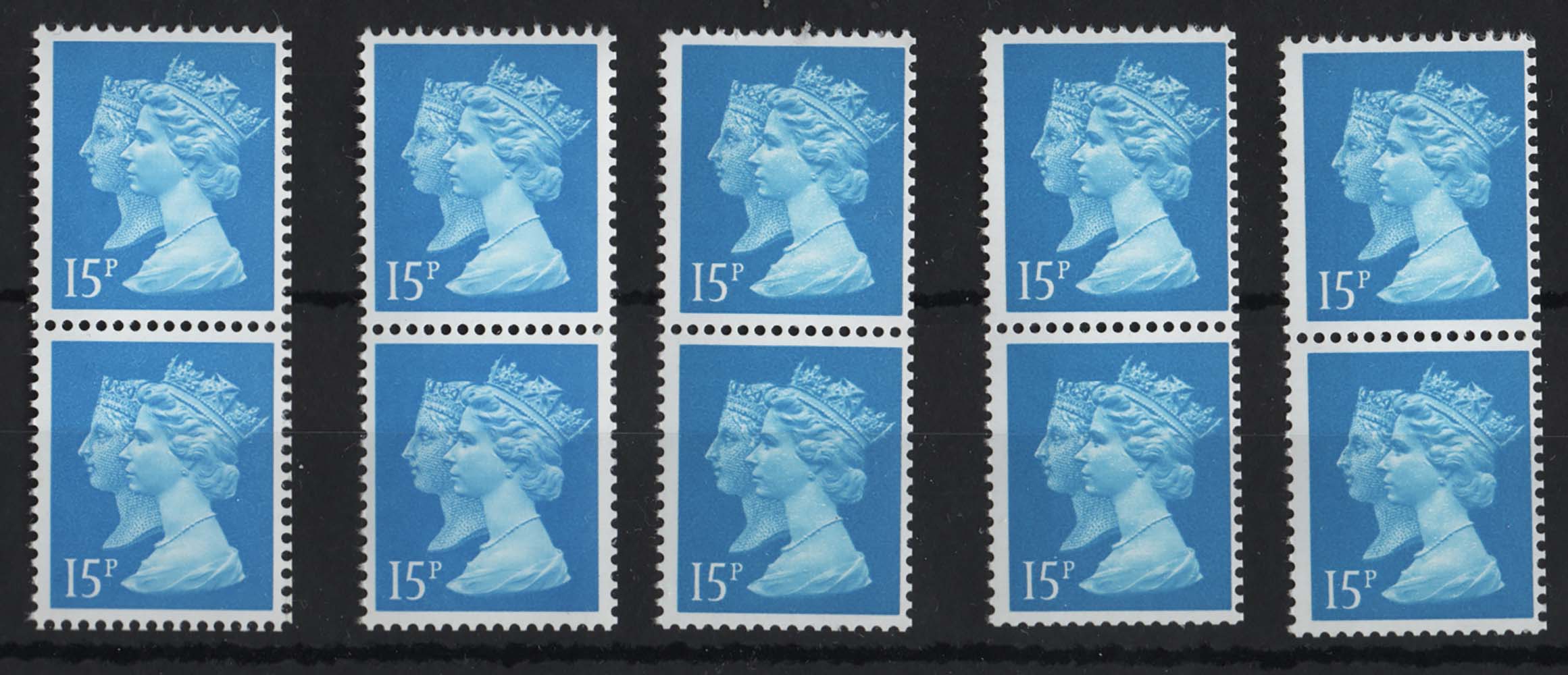 GB 1990 Machin double heads 15p left band good perfs um, 10 copies