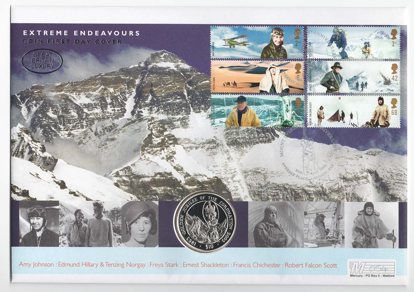 GB 2003 Sterling Silver Coin Cover: FDC Extreme Endeavours set incl Crown-size silver coin [ref 286755/b/aa0160]