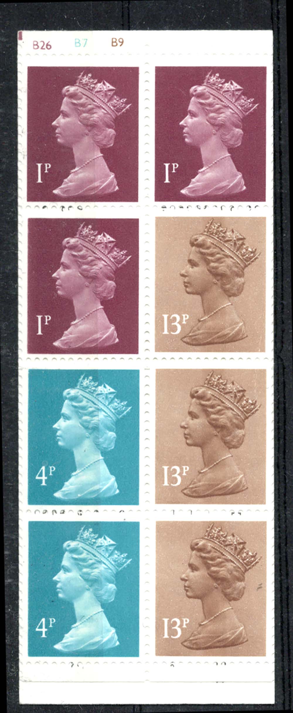 GB Booklets – Folded (good perfs) FB28 50p Orchids #2 cyl B26 B7(weak) B9 good perfs