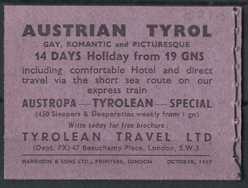 GB Booklets L01 4/6d Oct 57 [ref 287bb2596/sae/7u0327]