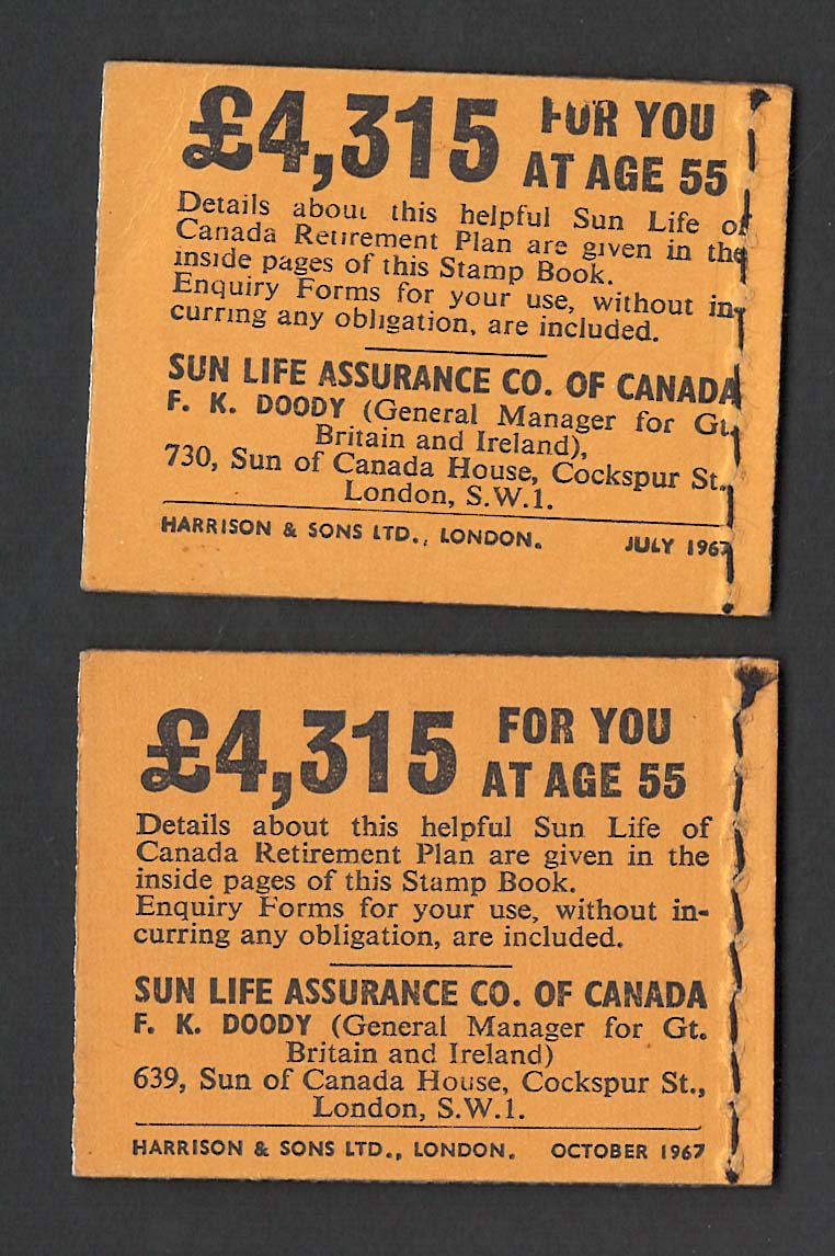 GB Booklets N29p 2s phosphor July 67 damaged type in FOR variety also N30p Oct 67 with 4d N4 cyl pane quite good perfs [ref: 292/608 sa/7e1272]