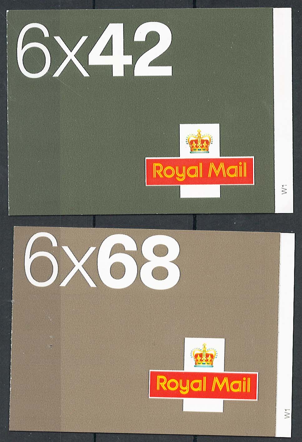 GB Booklets – SA NA1, NB1 6x 42p, 6x 68p without network logo, both cyl W1
