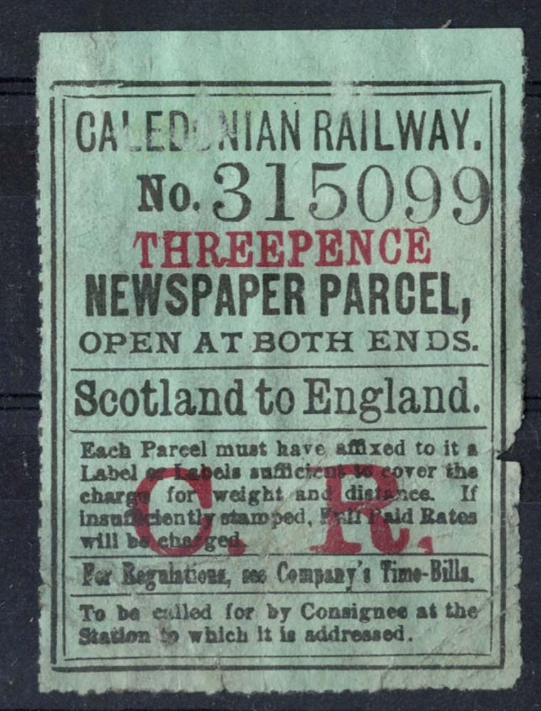 GB Railway Caledonian Railway : Newspaper Parcel 3d (Scotland to England), small imperfections [ref: 292/655 sa/9g0792]