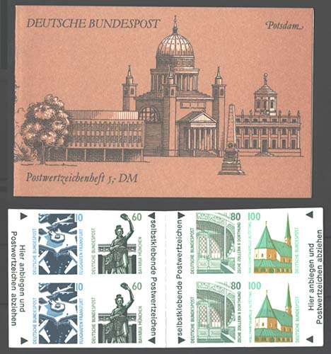 Germany 1991 German Castles self adhesive 5m booklet, ditto gummed stamps Mi26b