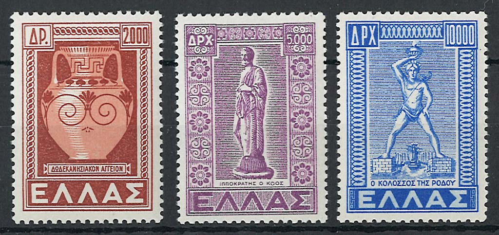 Greece 1947 Restoration key values 2000, 5000, 10000D fine mint sg678, 80-1 cat £280 [ref: 292/715 saD/7o0672]