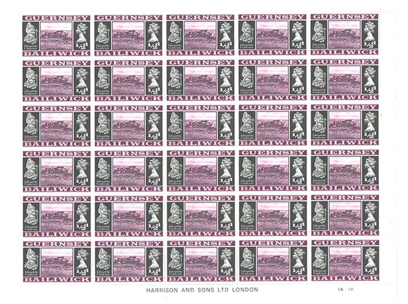 Guernsey 1969 ½d r4/2 nick in frame V270 (listed in SG variety cat), um 2x plate 1A sheets of 30 to show constant