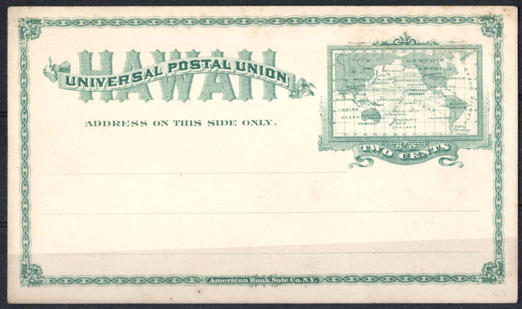 Hawaii 1894 Fine unused 2c world map UPU postal card – scarce this fine