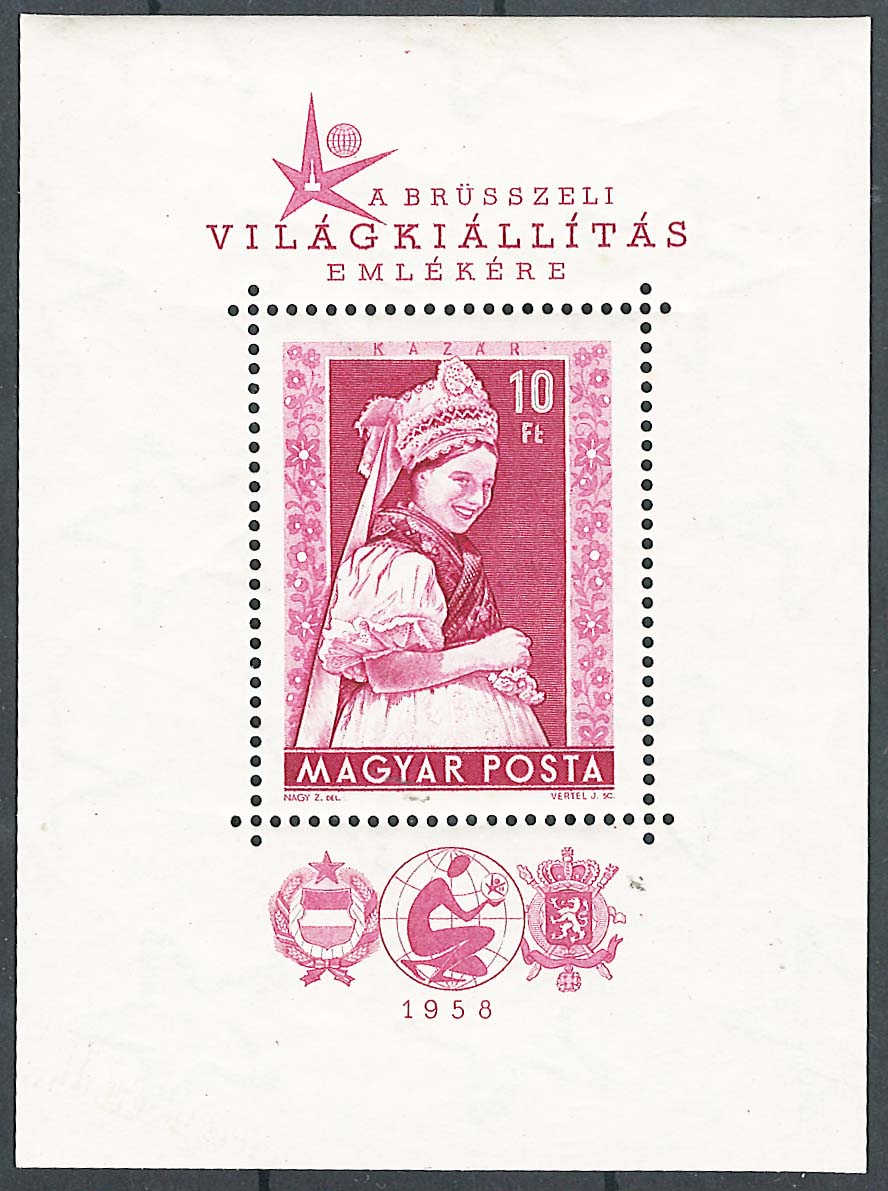Hungary 1958 Costumes 10f magenta M/sheet um sg1512a c£65 ‡