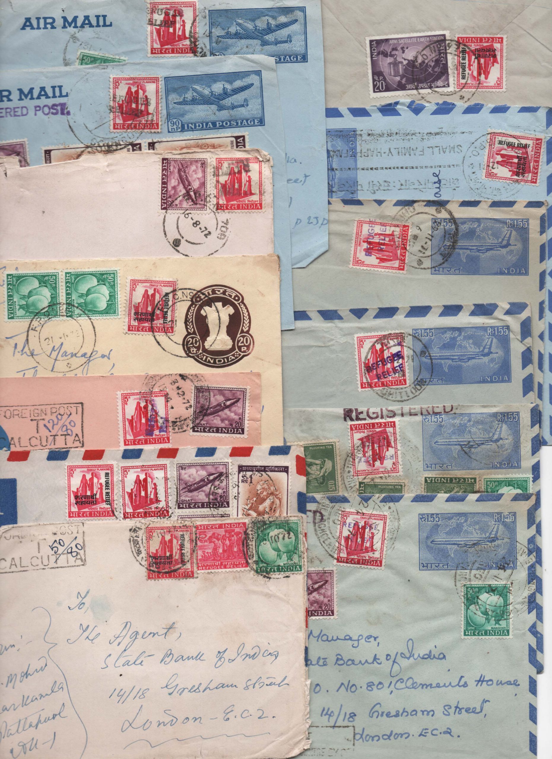 India 1972 13x commercial covers bearing Refugee Relief stamps, various ovpt types, different h/stamps, colours, etc