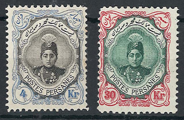 Iran 1911 4k black & blue & 30k green & red fine mint sg377 381 cat £349 – see webphoto [ref: 292/756 saD/6o0221]