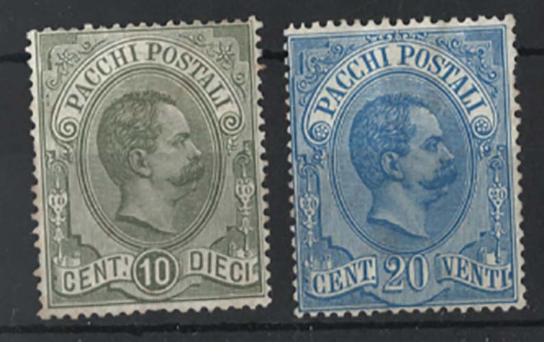 Italy 1884 Parcel 10c olive grey, 20c blue, fine mint no gum, odd nibbled perf sgP38-9 cat £575 [ref: 292/766 saD/8q0705]