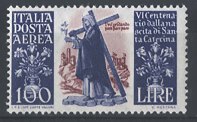 Italy 1948 St Catherine 100L unmounted mint sg702 cat £140 [ref: 292/783 saD/8q0694]