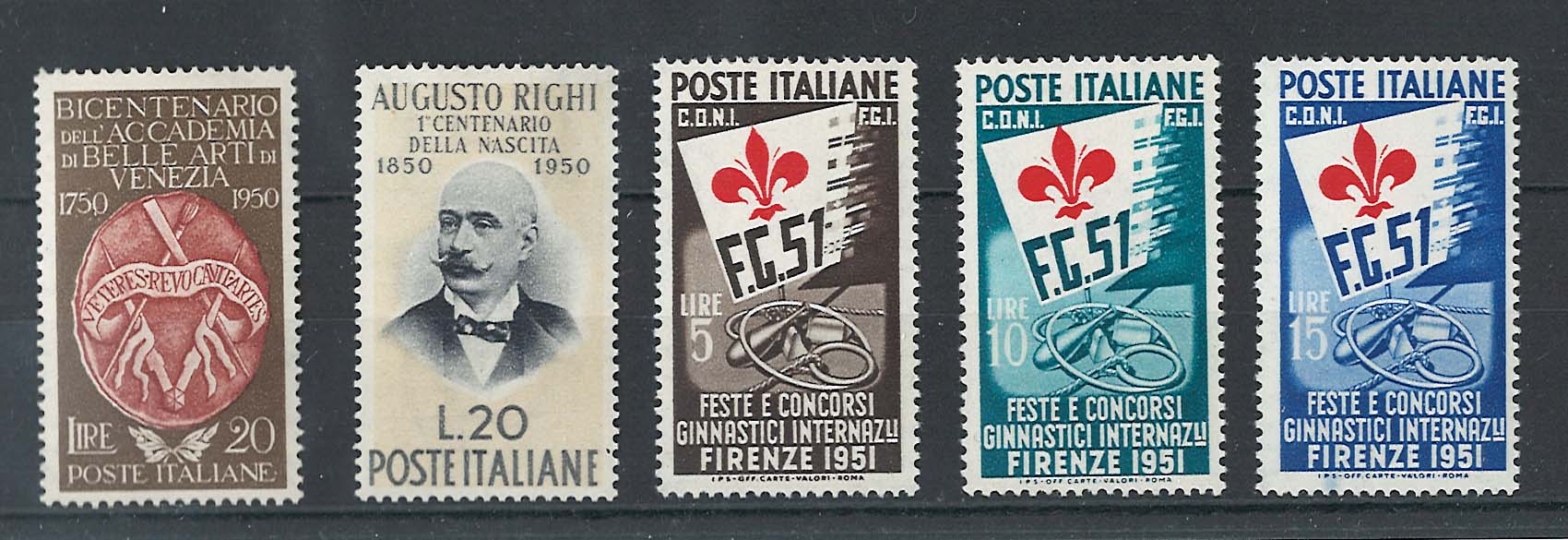 Italy 1951 Venice fine Arts, RIGHI & Gymnastics Festival sets fine mint sg758-9, 787-9 cat £138 [ref: 292/790 saD/6k0895]