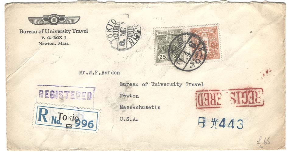 Japan 1936 Neat reg cover to USA franked 26s [ref 2742513/s/8u0127]