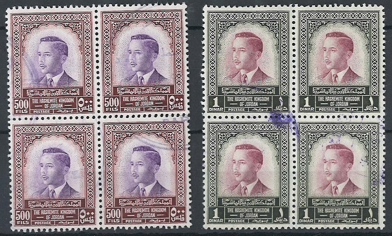 Jordan 1954 500f – 1d King Hussein sg430-1 used blocks of 4 cat £166 7e0757 273sa Middle East [ref: 292/810 sa/7e0757]