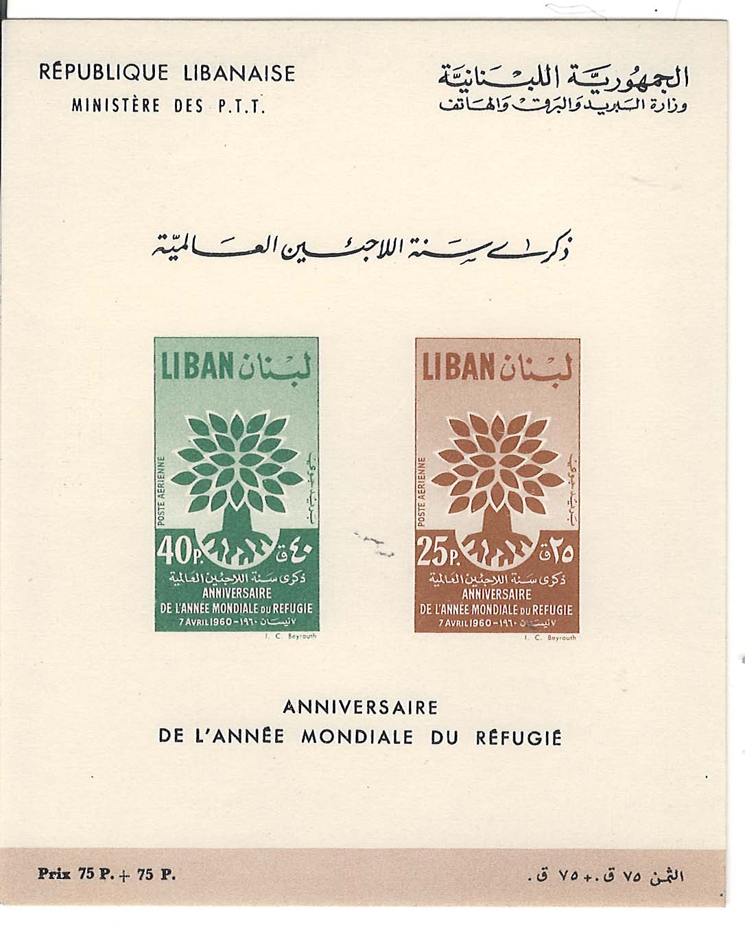 Lebanon 1960 World Refugee Year min. sheet, sg648a, um c£55 ‡ [ref 2742565/sa/y78120]